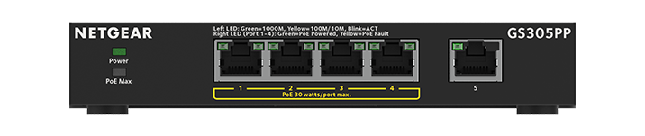 NETGEAR 5-Port Gigabit Ethernet Unmanaged High-Power PoE+ Switch with 4 PoE+ Ports (83W)