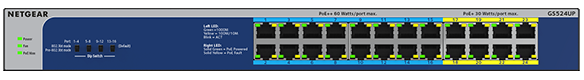 - 802.3bt Power Over Ethernet (PoE++) on the GS516UP and GS524UP models for IP cameras, VoIP/Internet-based phones, wireless access points, smart building lighting, audio speakers and pan-tilt-zoom cameras