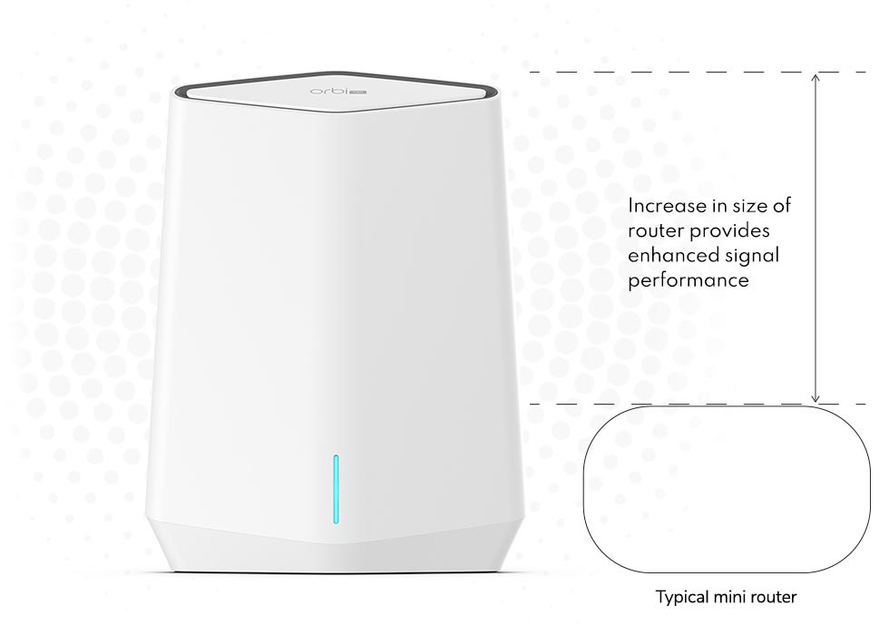 Orbi Pro’s unique shape, height and array of high-power antennas deliver longer, stronger WiFi signals and maximum speed in every corner of your home or business.