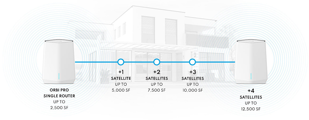 Easily add WiFi coverage with additional wireless satellites — each expands coverage by 2,500 sq. ft. (sold separately).